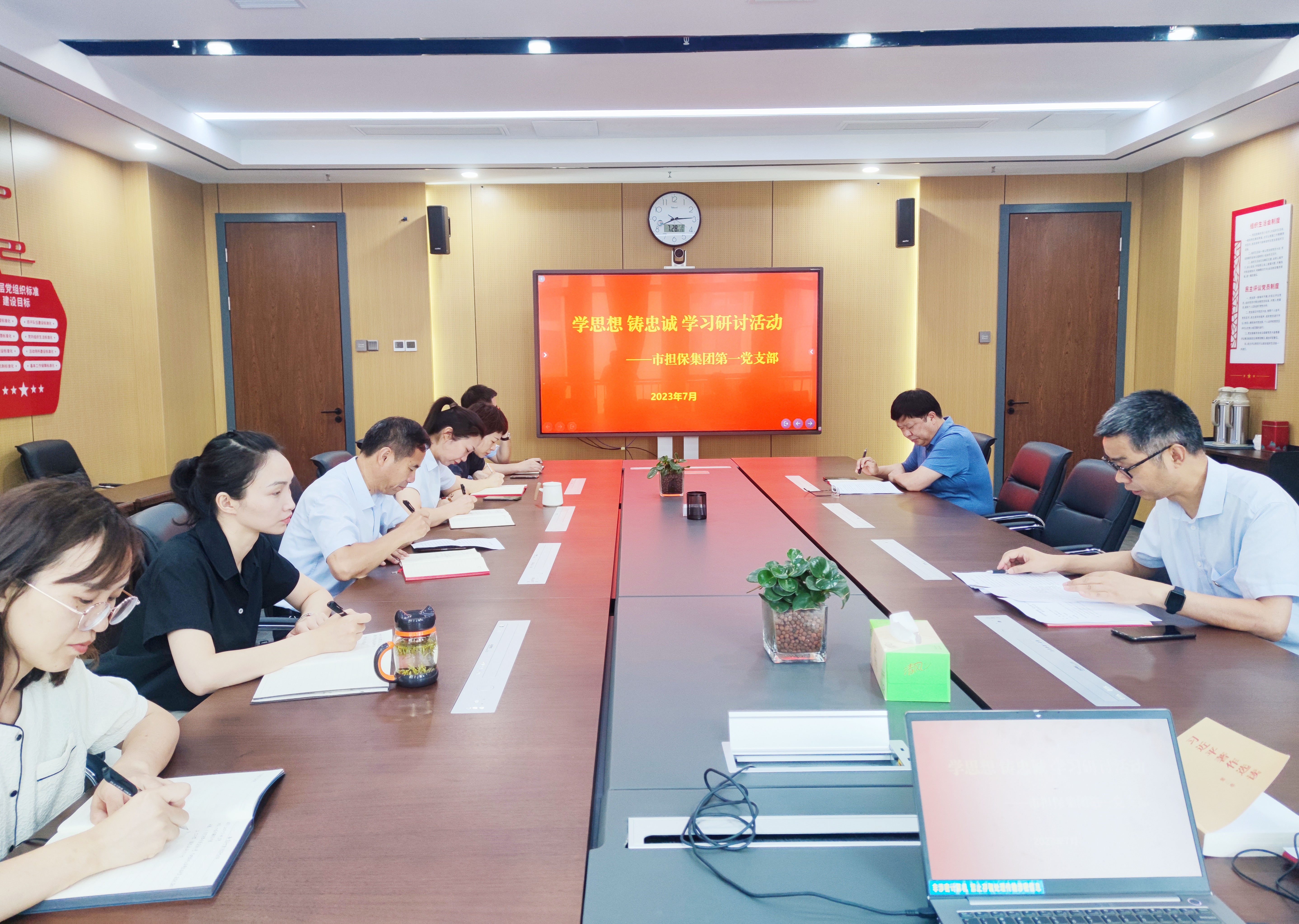 為慶祝中國(guó)共產(chǎn)黨成立102周年,7月28日,市擔(dān)保集團(tuán)第一黨支部開展“學(xué)思想、鑄忠誠(chéng)”學(xué)習(xí)研討活動(dòng),支部黨員參加會(huì)議。