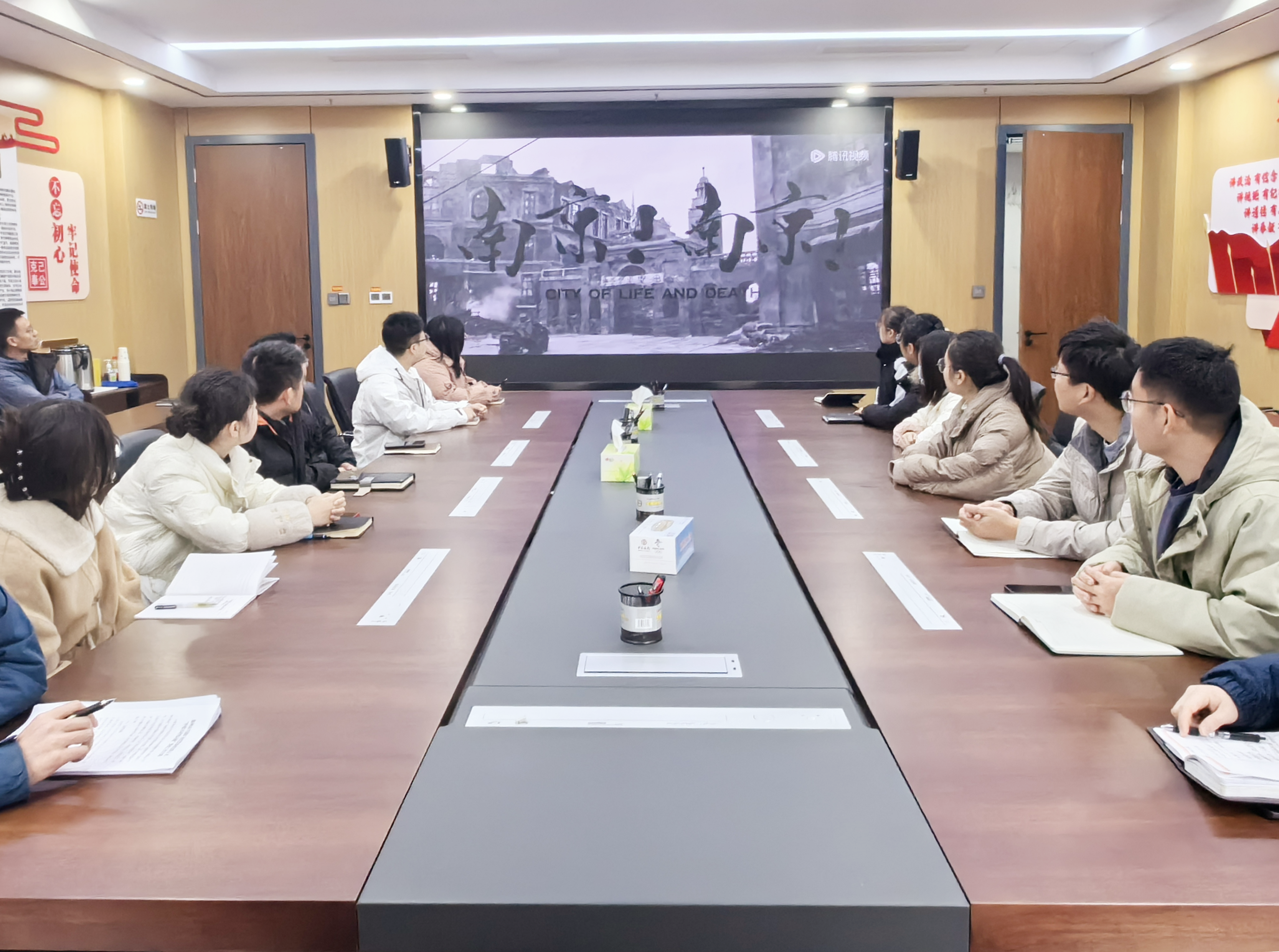 上午10時(shí)整,全體團(tuán)員默立一分鐘,向南京大屠殺死難者致哀。默哀畢,市擔(dān)保集團(tuán)團(tuán)支部聯(lián)合市礦投集團(tuán)團(tuán)支部組織全體團(tuán)員青年觀看歷史題材電影《南京!南京!》和《拉貝日記》,這兩部影片講述了86年前的今天,時(shí)為國民政府首都的南京城淪陷,但仍有許多官兵、愛國人士以及國際友人在民族存亡之際敢于留守,積極營救中國難民,與日軍展開激烈戰(zhàn)斗的故事。一幕幕歷史畫面,一樁樁血淚慘案,一個(gè)個(gè)死難同胞,無不觸動(dòng)著全體團(tuán)員青年的內(nèi)心,大家低頭沉思戰(zhàn)爭給中國人民帶來的苦痛經(jīng)歷,深切緬懷同胞先烈。