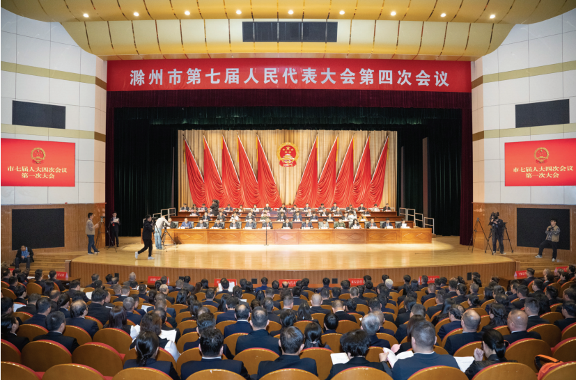 大會(huì)會(huì)場氣氛熱烈、莊重。主席臺(tái)帷幕中央,鮮艷的紅旗簇?fù)碇f嚴(yán)的國徽。二樓眺臺(tái)上懸掛的“深入學(xué)習(xí)貫徹習(xí)近平總書記考察安徽重要講話精神,真抓實(shí)干、創(chuàng)先爭優(yōu),奮力譜寫現(xiàn)代化新滁州建設(shè)新篇章!”大幅標(biāo)語鼓舞人心,催人奮進(jìn)。