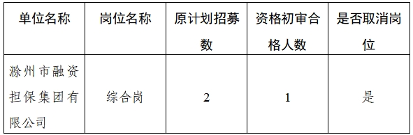 滁州市融資擔(dān)保集團(tuán)有限公司招募見習(xí)人員崗位取消公告
