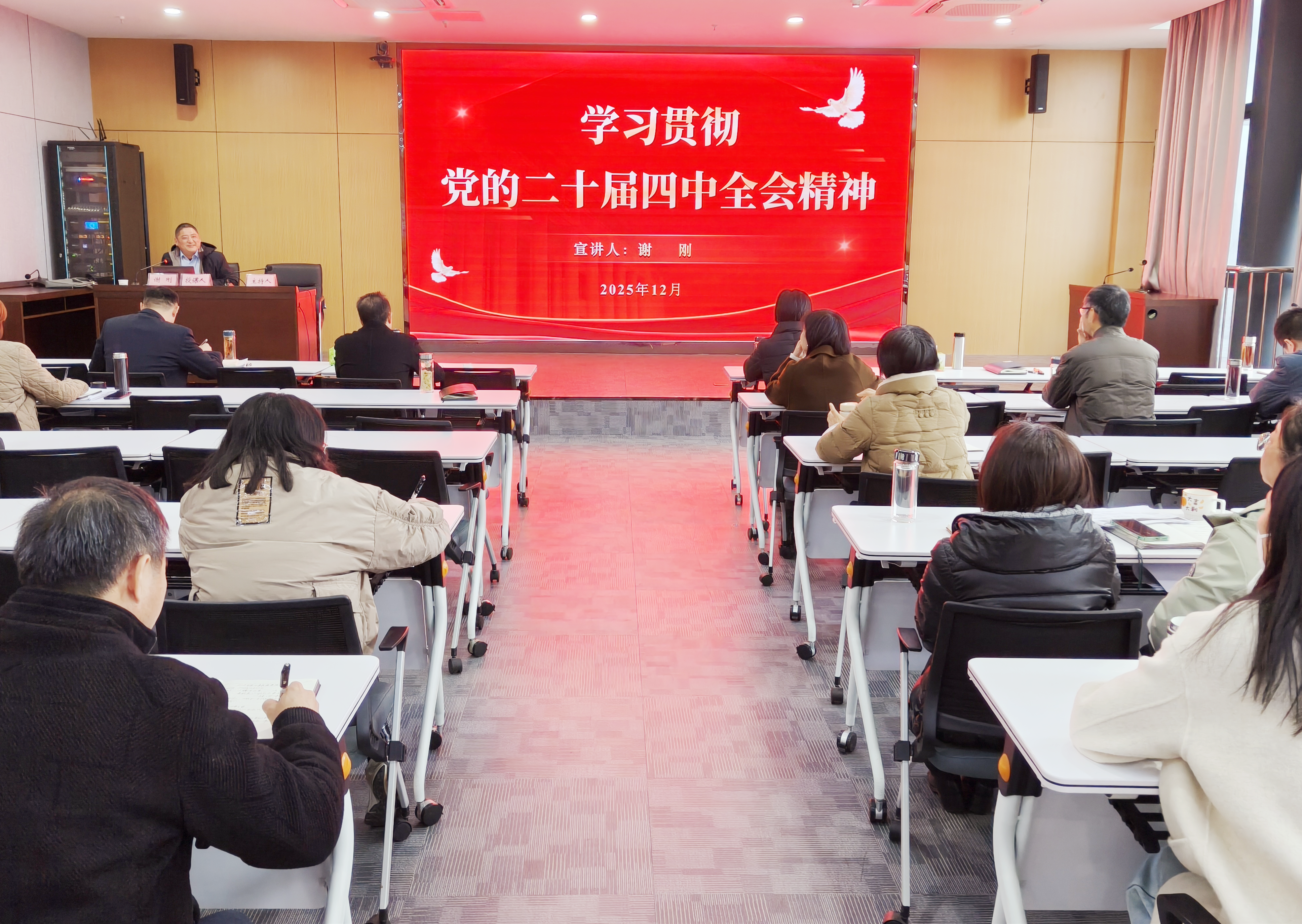 為進(jìn)一步學(xué)習(xí)好、宣傳好、貫徹好黨的二十屆四中全會(huì)精神,把思想和行動(dòng)迅速統(tǒng)一到黨中央的決策部署上來(lái),12月22日,市擔(dān)保集團(tuán)舉行“舉旗幟·送理論”學(xué)習(xí)貫徹黨的二十屆四中全會(huì)精神專題宣講報(bào)告會(huì),邀請(qǐng)滁州廣播電視大學(xué)黨委委員、副校長(zhǎng)謝剛作專題宣講報(bào)告,集團(tuán)及子公司全體干部職工參加學(xué)習(xí)。