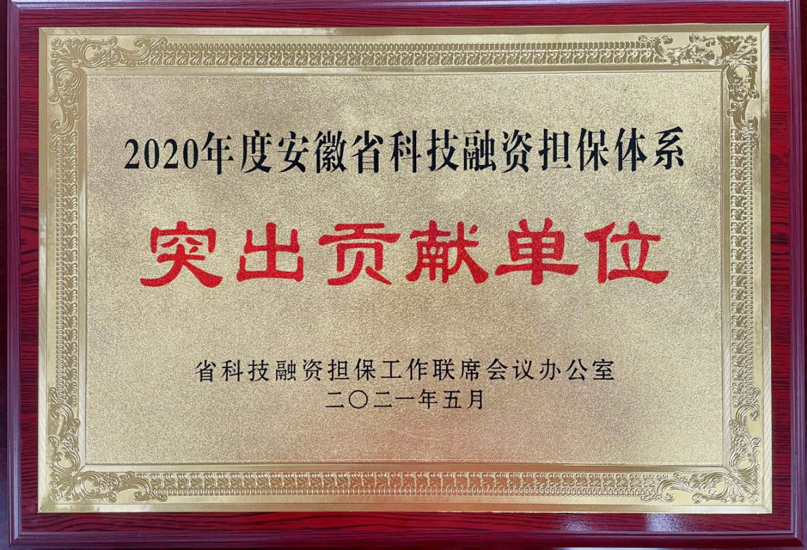 市普惠融資擔(dān)保公司被評為2020年安徽省科技融資擔(dān)保體系突出貢獻單位