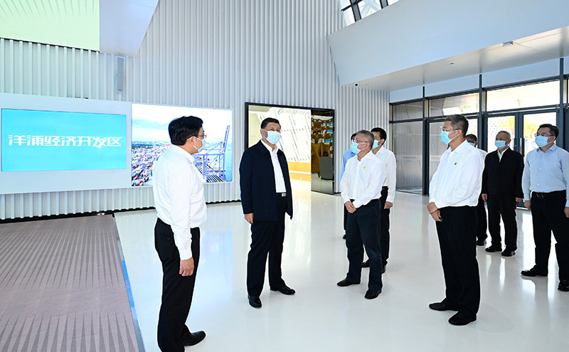 隨后,習(xí)近平來到洋浦國際集裝箱碼頭小鏟灘港區(qū),了解港口建設(shè)發(fā)展情況,同現(xiàn)場作業(yè)人員、掛職干部代表等親切交流。習(xí)近平強調(diào),振興港口、發(fā)展運輸業(yè),要把握好定位,增強適配性,堅持綠色發(fā)展、生態(tài)優(yōu)先,推動港口發(fā)展同洋浦經(jīng)濟開發(fā)區(qū)、自由貿(mào)易港建設(shè)相得益彰、互促共進(jìn),更好服務(wù)建設(shè)西部陸海新通道、共建“一帶一路”。他指出,黨中央選派干部來自由貿(mào)易港掛職,既體現(xiàn)了黨中央對自由貿(mào)易港建設(shè)的關(guān)心和支持,也是對干部的培養(yǎng)鍛煉,要發(fā)揮掛職干部的積極作用,讓他們在基層一線增長才干。