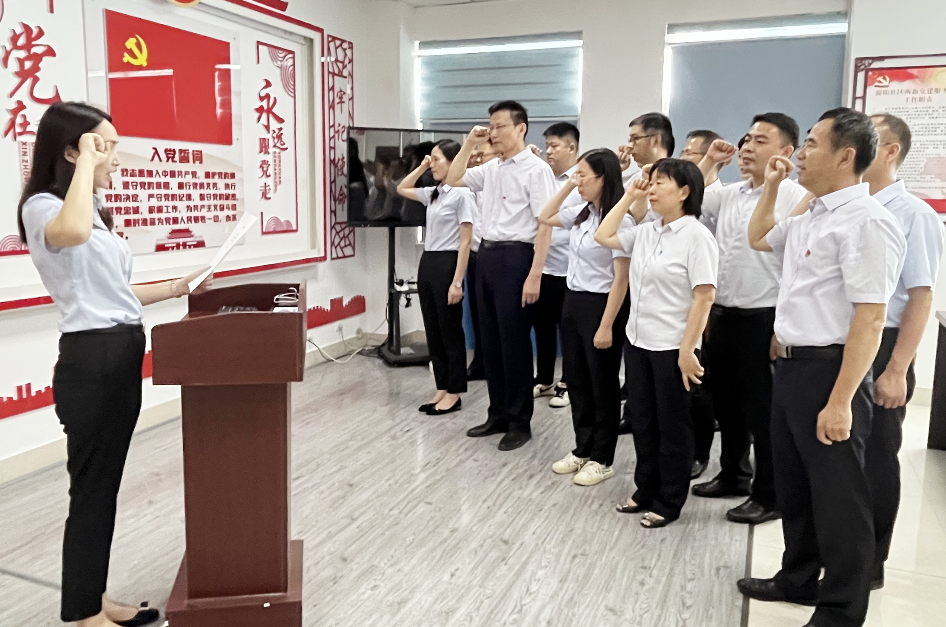 在活動(dòng)現(xiàn)場(chǎng),講解員引導(dǎo)大家邊觀看視頻和圖文資料,邊詳細(xì)解說相關(guān)內(nèi)容,從五個(gè)方面講述了中國(guó)共產(chǎn)黨建黨前的時(shí)代背景、中共一大召開時(shí)的情景以及紅船精神的內(nèi)涵和意義。全體黨員認(rèn)真觀看、仔細(xì)聆聽、深入思考,深刻地領(lǐng)悟了中國(guó)共產(chǎn)黨開天辟地、敢為人先的首創(chuàng)精神;堅(jiān)定理想、百折不撓的奮斗精神;立黨為公、忠誠(chéng)為民的奉獻(xiàn)精神。增強(qiáng)了對(duì)“紅船精神”是中國(guó)革命精神之源的理解和認(rèn)識(shí)?;顒?dòng)中,全體黨員還面對(duì)黨旗,重溫了入黨誓詞。